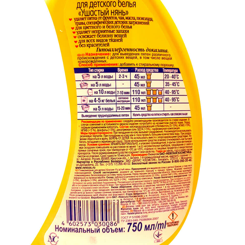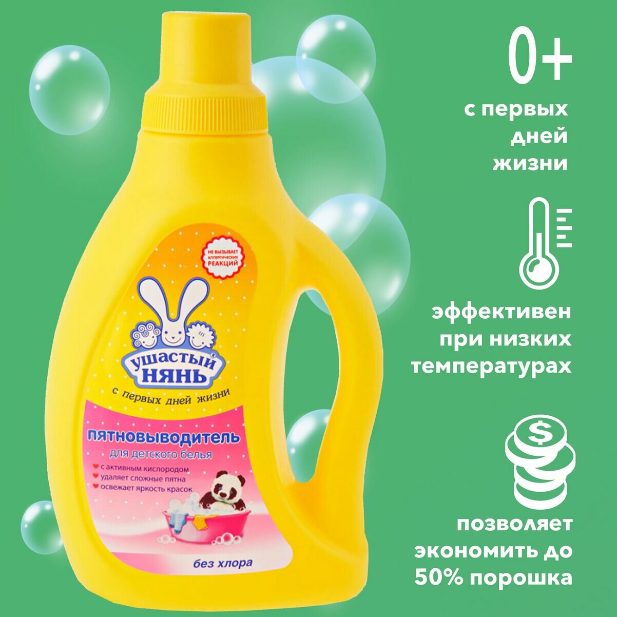 Пятновыводитель Ушастый нянь, для детского белья, жидкий, 750 мл/Гипоаллергенный с первых дней жизни