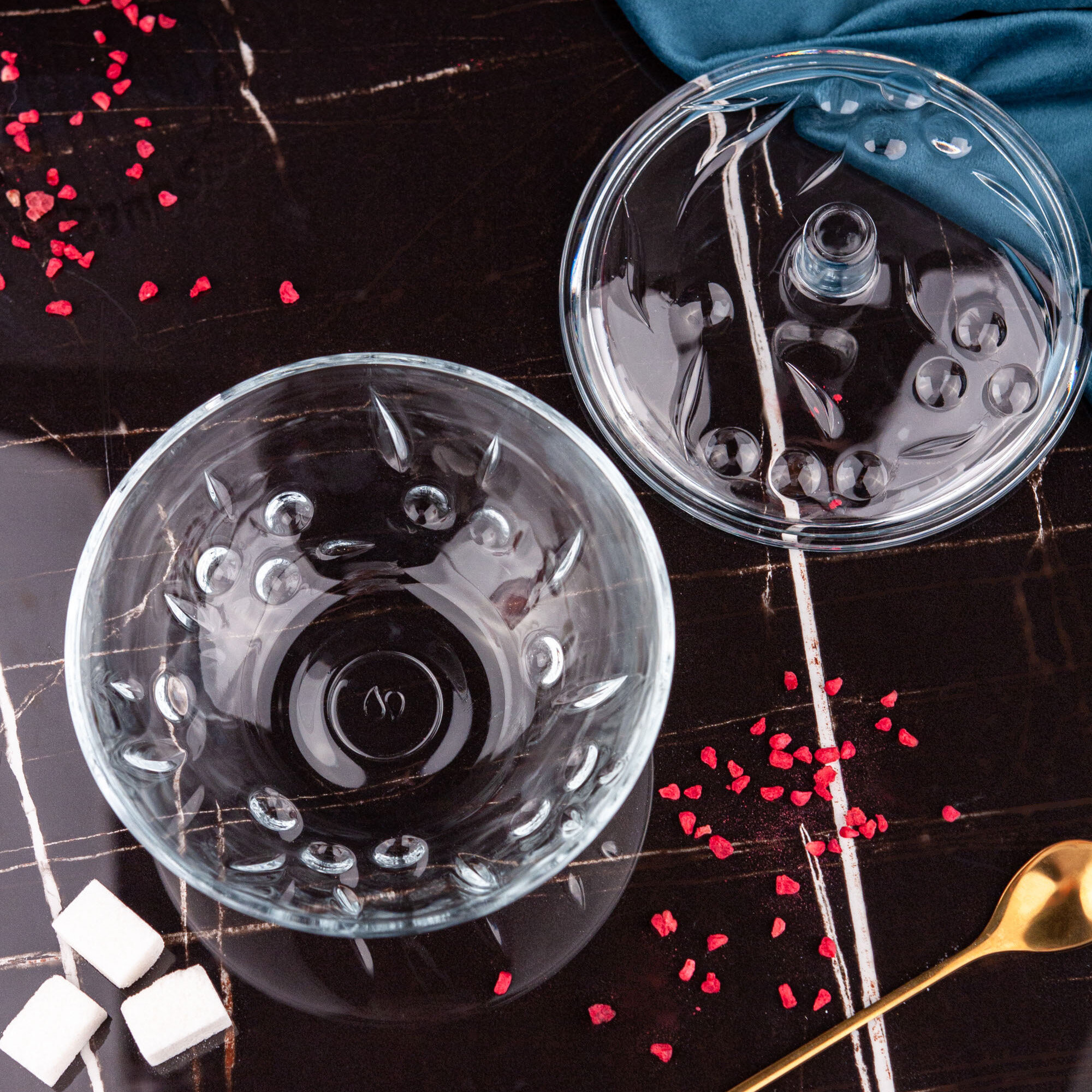 Комплект 4 шт, Сахарница, с крышкой, диаметр 140 мм, фактурное стекло, "Perla", PASABAHCE, 97236