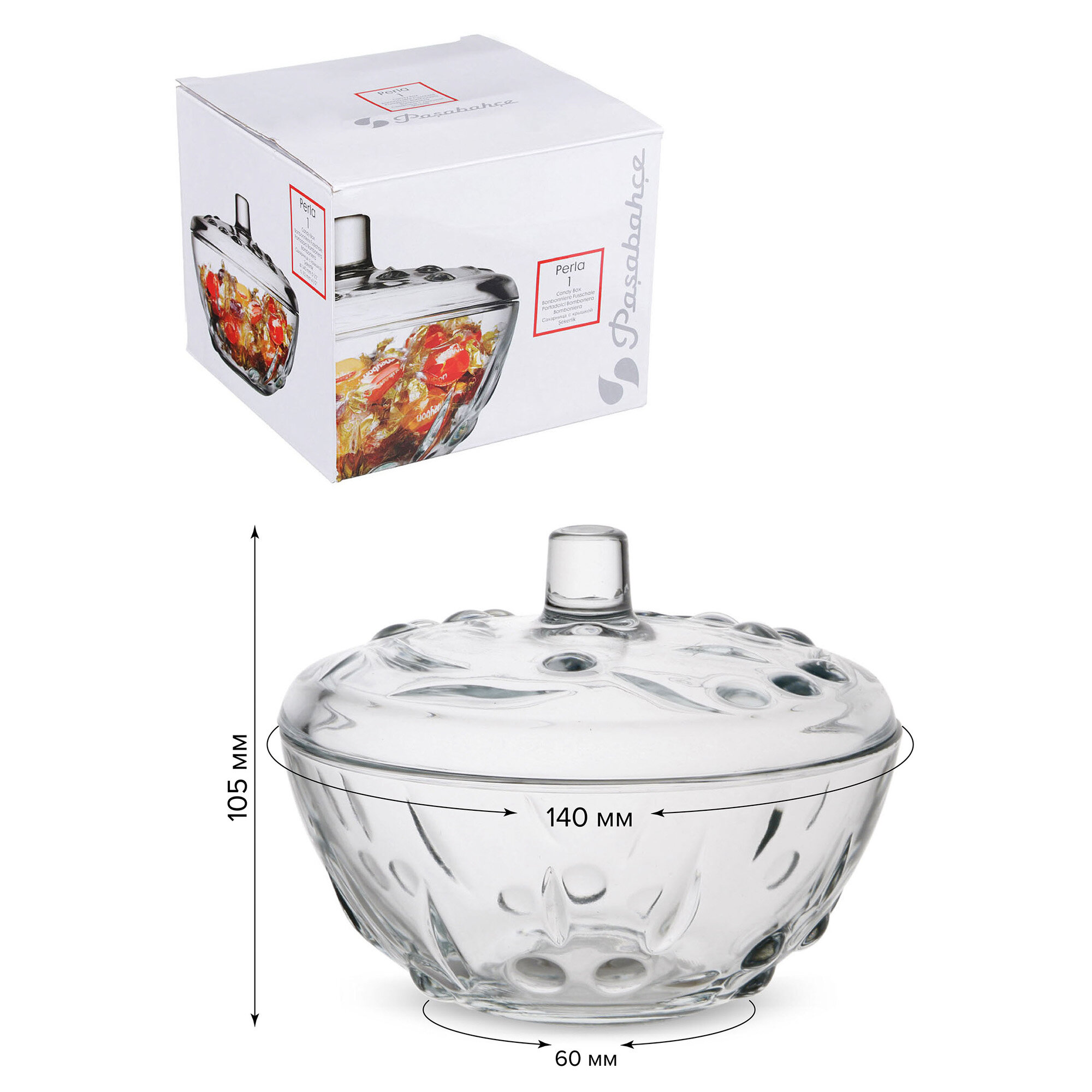 Сахарница Pasabahce Perla с крышкой, 97236B 14 см 1 шт. прозрачный 10.5 см 14 см 500 мл 14 см