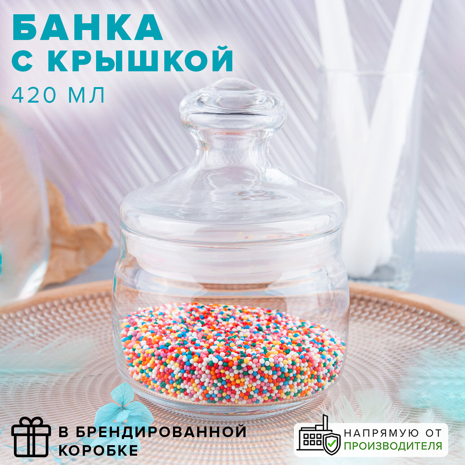 Банка для сыпучих продуктов Cesni, 420 мл, цвет прозрачный
