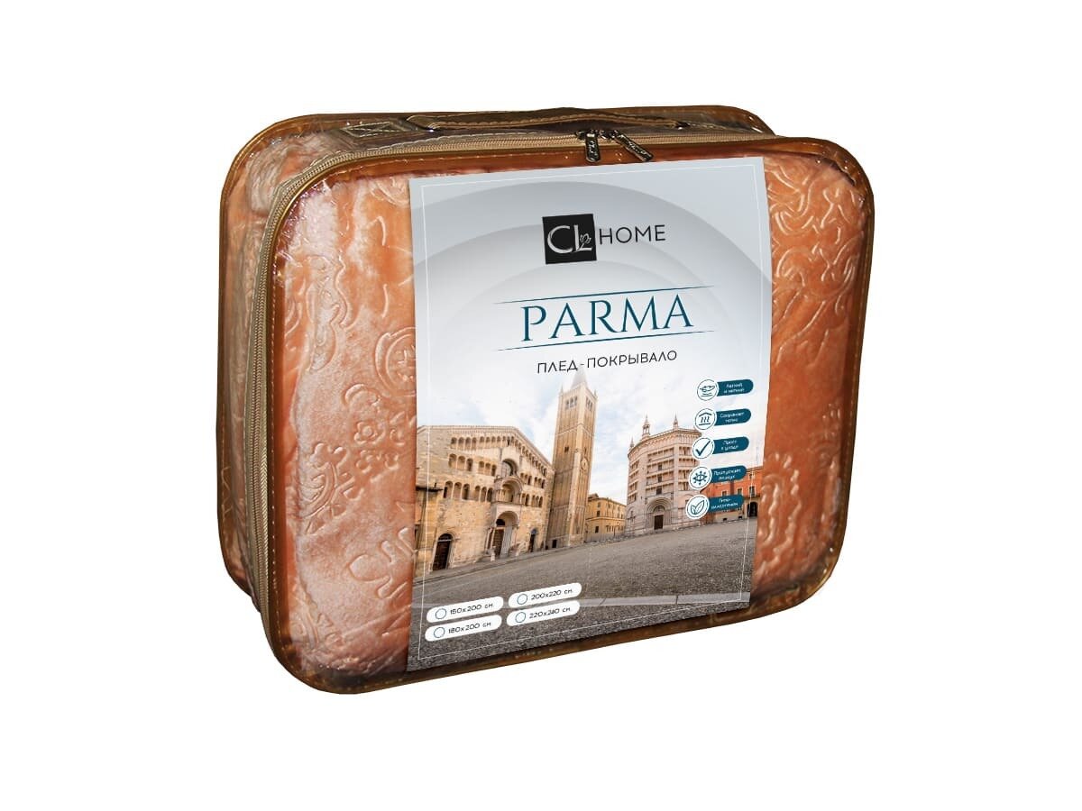 Плед 180х200 2-спальный Cleo Parma светлое какао, покрывало на кровать и диван пушистое с рисунком, велсофт