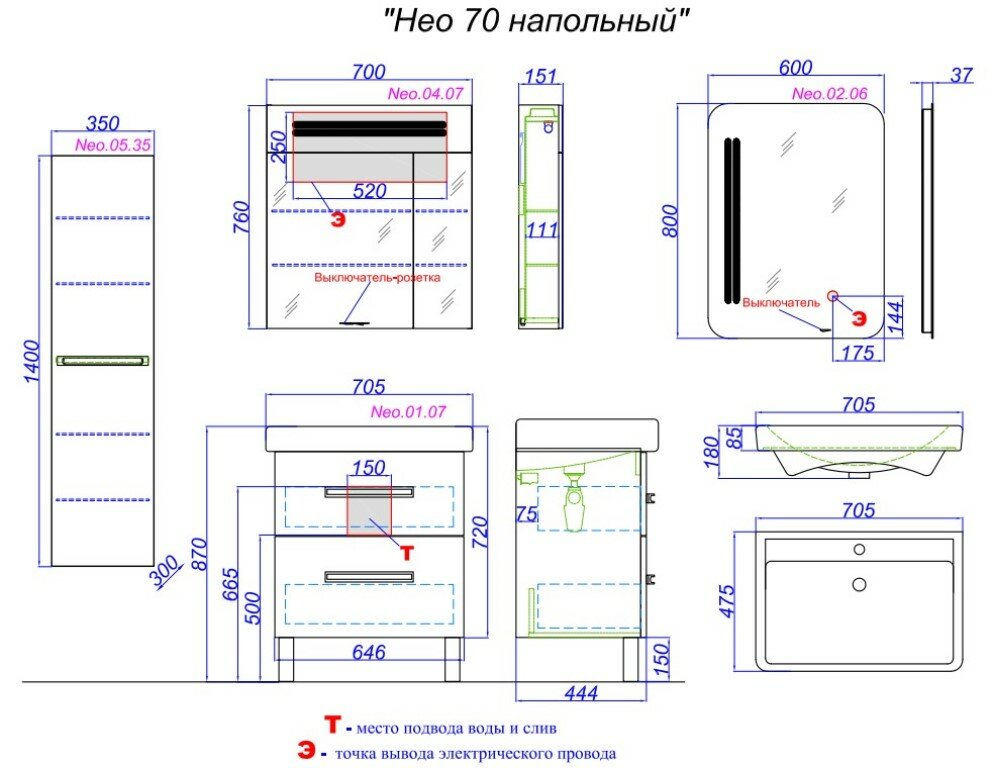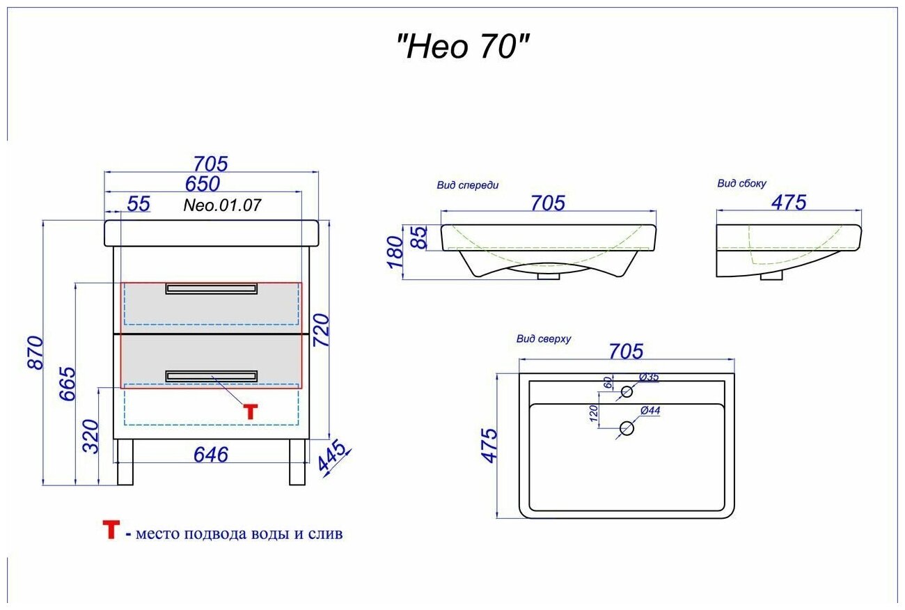 Тумба под раковину AQWELLA Нео T6 напольная