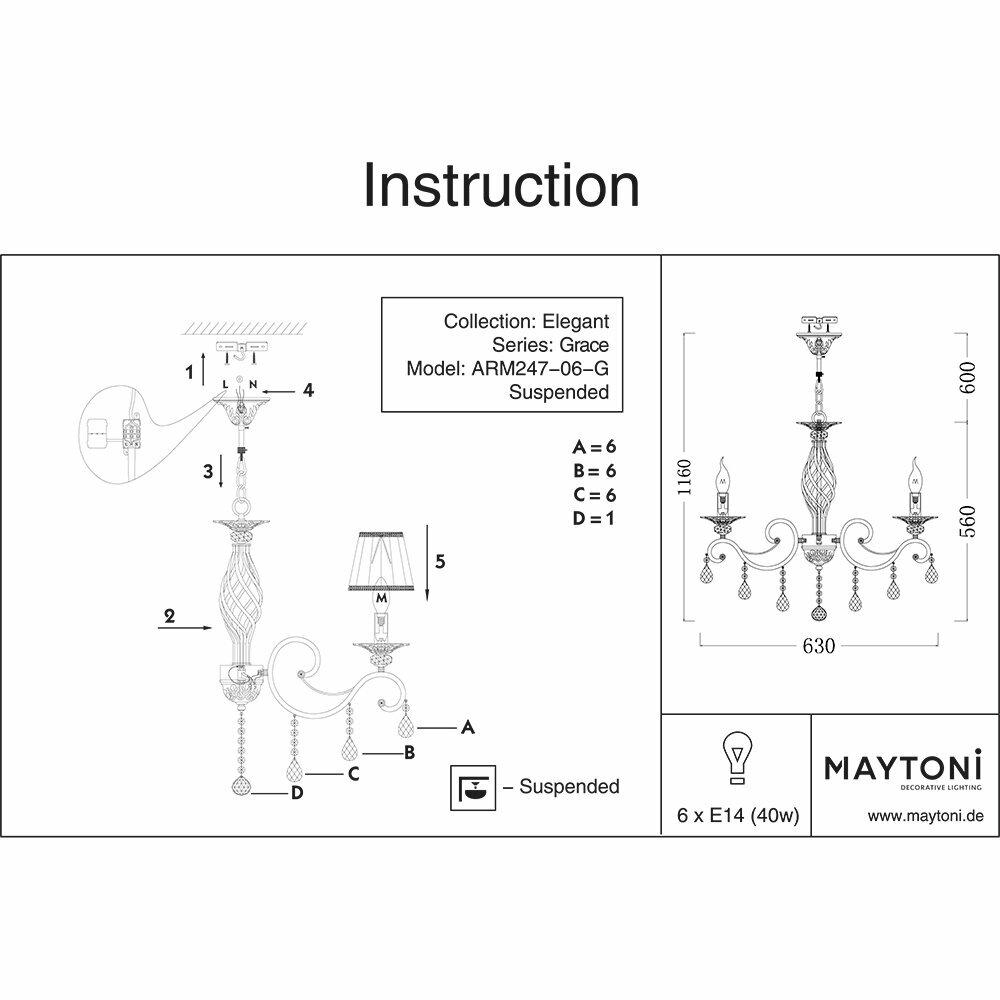 Купить Люстра подвесная Maytoni ARM247-06-G Grace