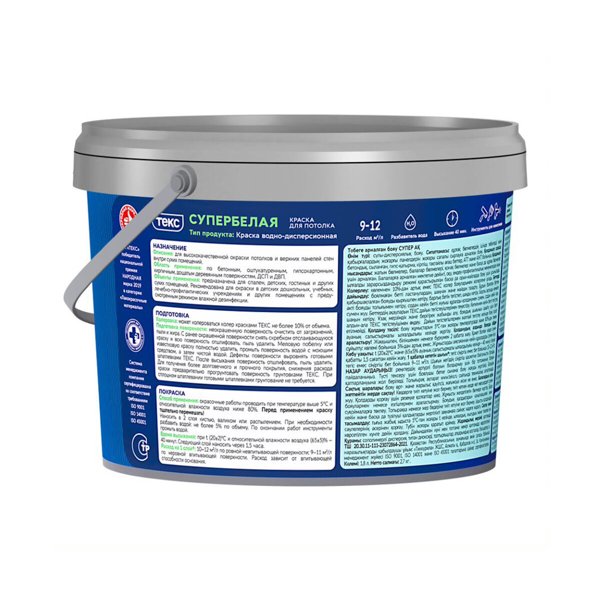 Текс Для потолков краска в/д (1,8л) профи / текс Для потолка краска в сухих помещениях (1,8л) класс профи