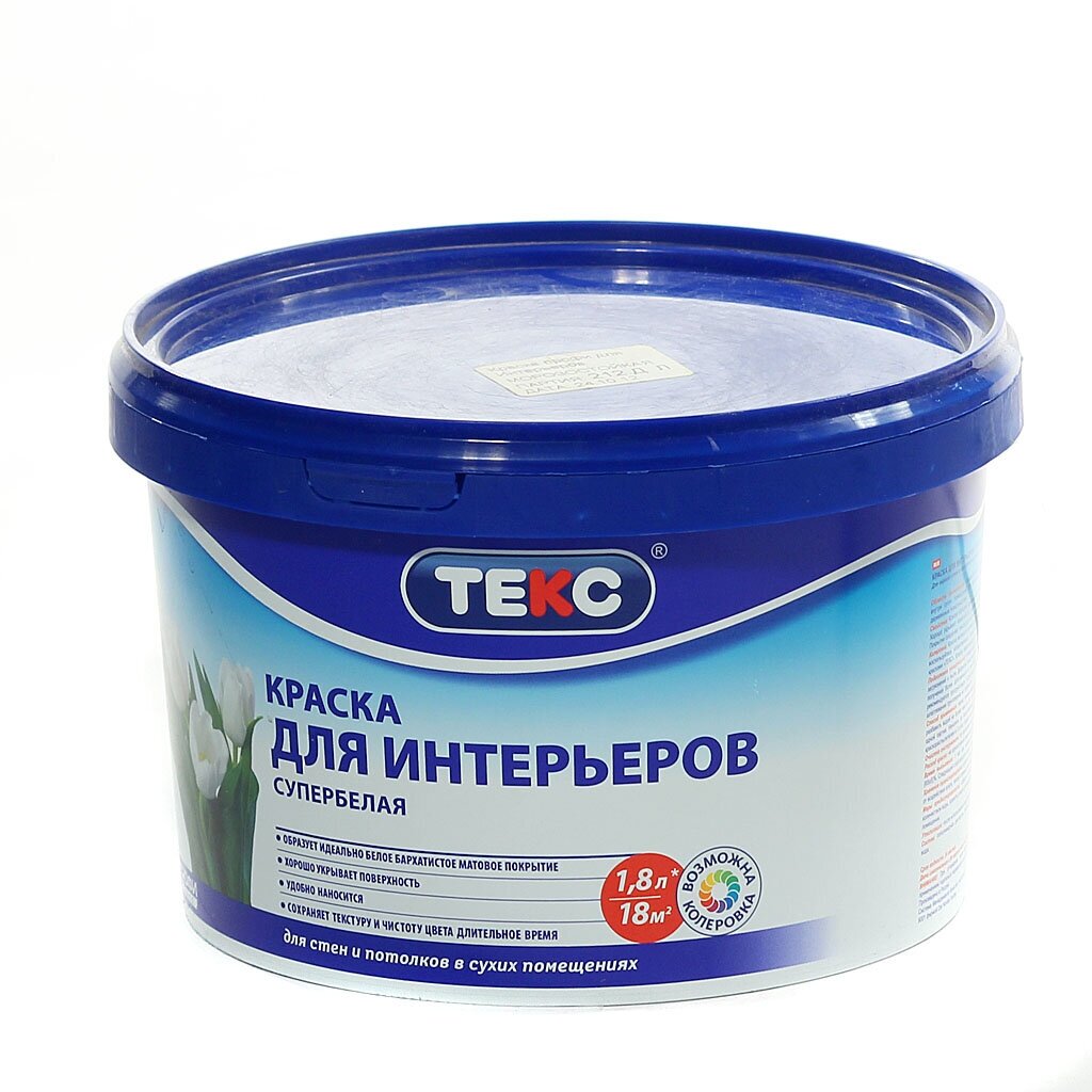 Краска водно-дисперсионная Текс Профи для интерьеров 1,8 л супербелая