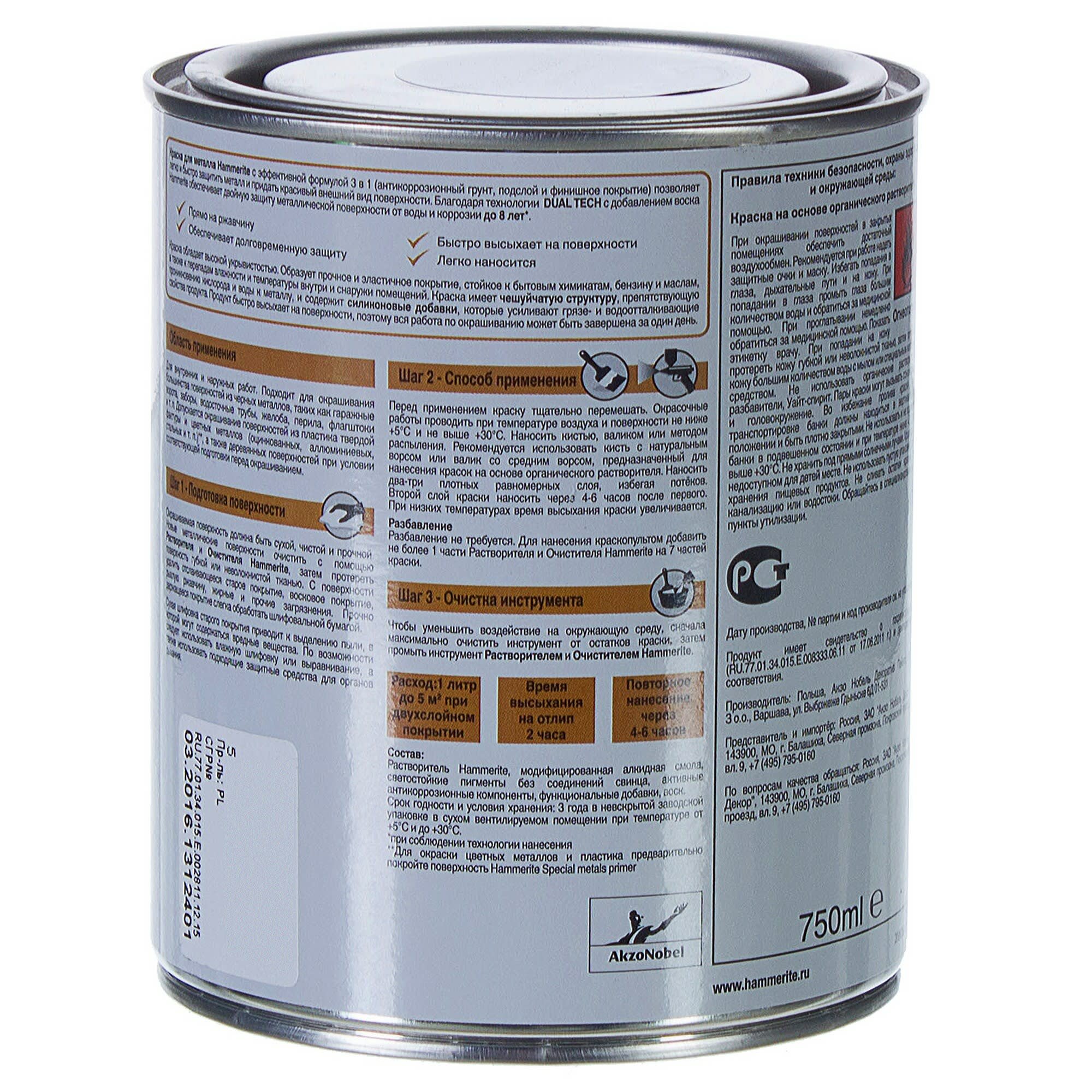 Hammerite Smooth эмаль гладкая по ржавчине 3в1 (серый RAL 7042, 0,75 л)