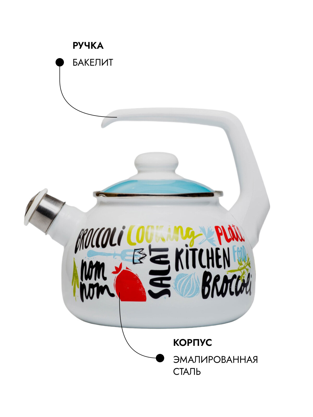Чайник эмалированный со свистком Metrot Брокколи, 2,5 л