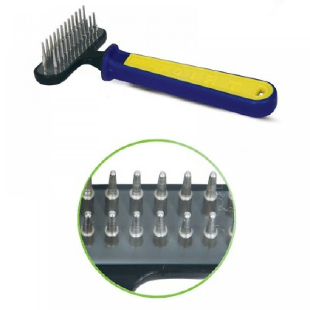 Расческа-грабли для животных Triol двухрядные сине-желтая ручка
