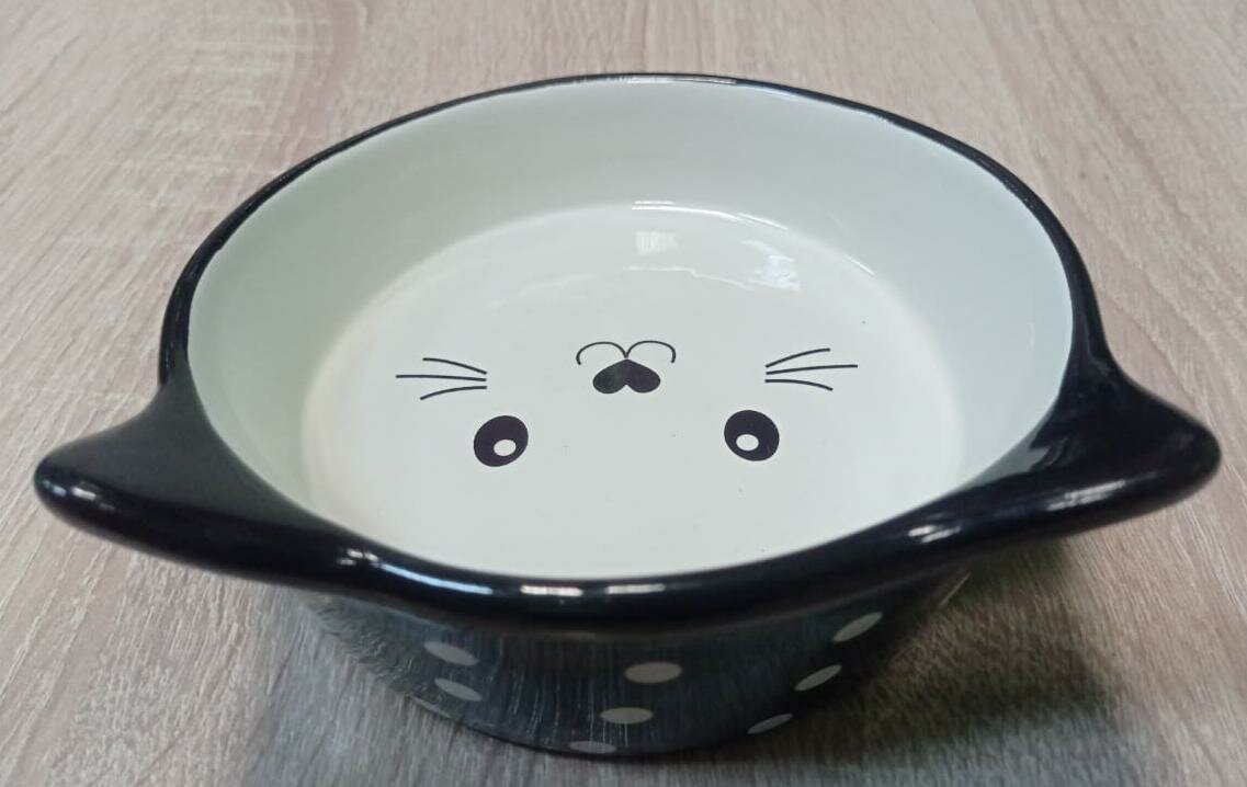 КерамикАрт Миска керамическая для кошек 250мл Мордочка кошки черная в горошек