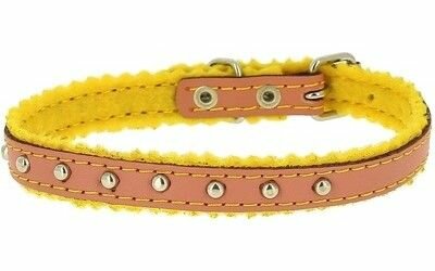 Ошейник кожаный украшенный, на синтепоне, с бубенчиками, 28 х 1 см, желтый