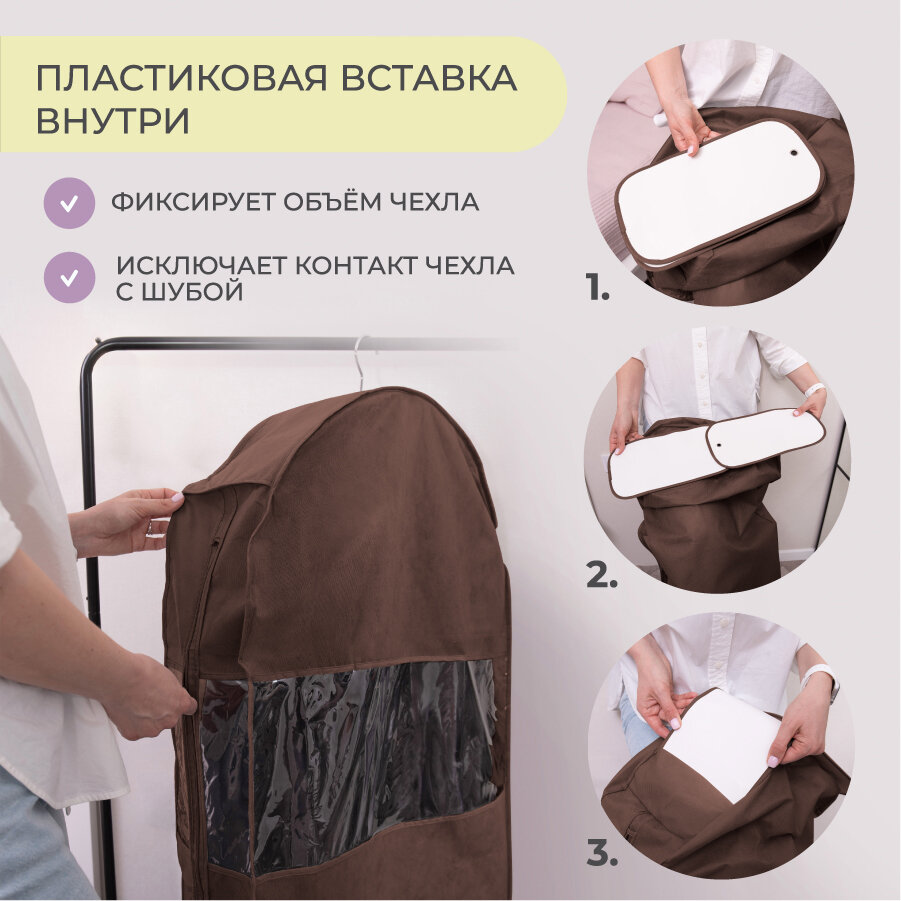 Чехол для верхней одежды всё на местах Чехол для шуб LUX длинный 130х60х18 см, 130х60х130 см, коричневый интересное: