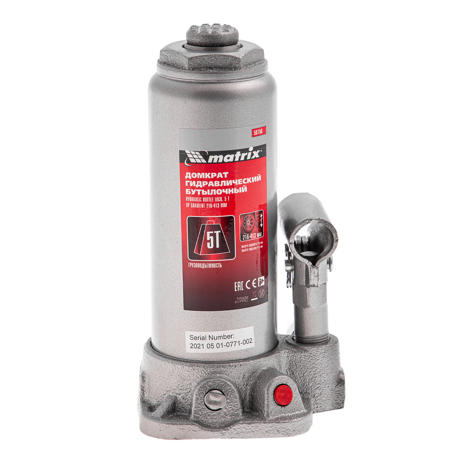 Домкрат (MATRIX Домкрат гидравлический бутылочный, 5 т, H подъема 216-413 мм 50756)