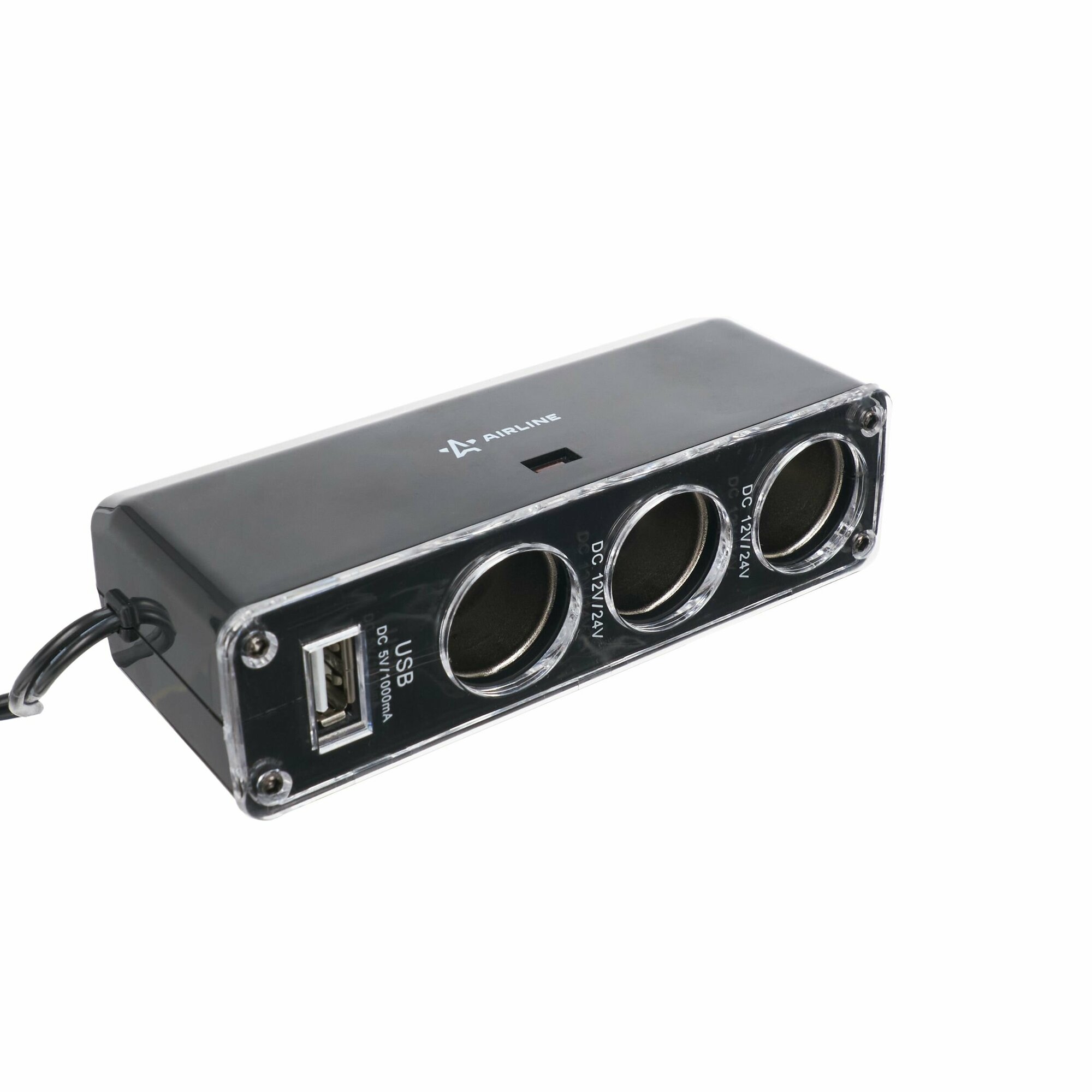 AIRLINE ASP-3U-07 Прикуриватель-разветвитель на 3 гнезда + USB (черный)