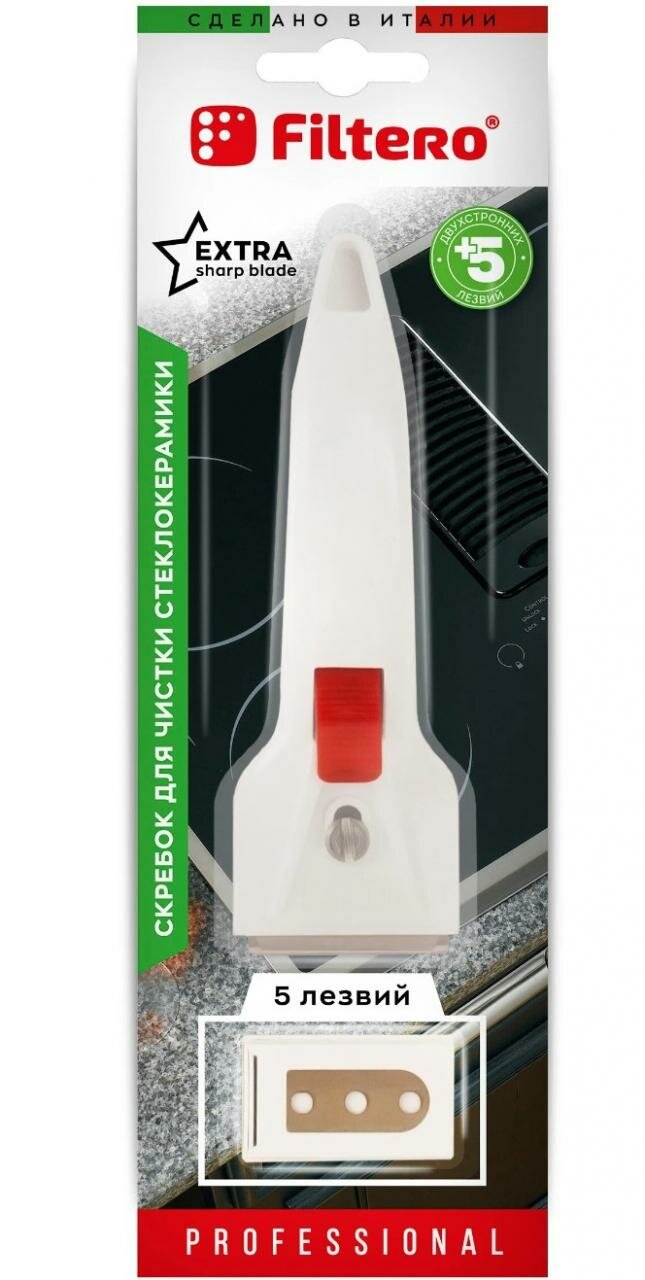Скребок Filtero для очистки стеклокерамических плит + 5 запасных лезвий, Италия