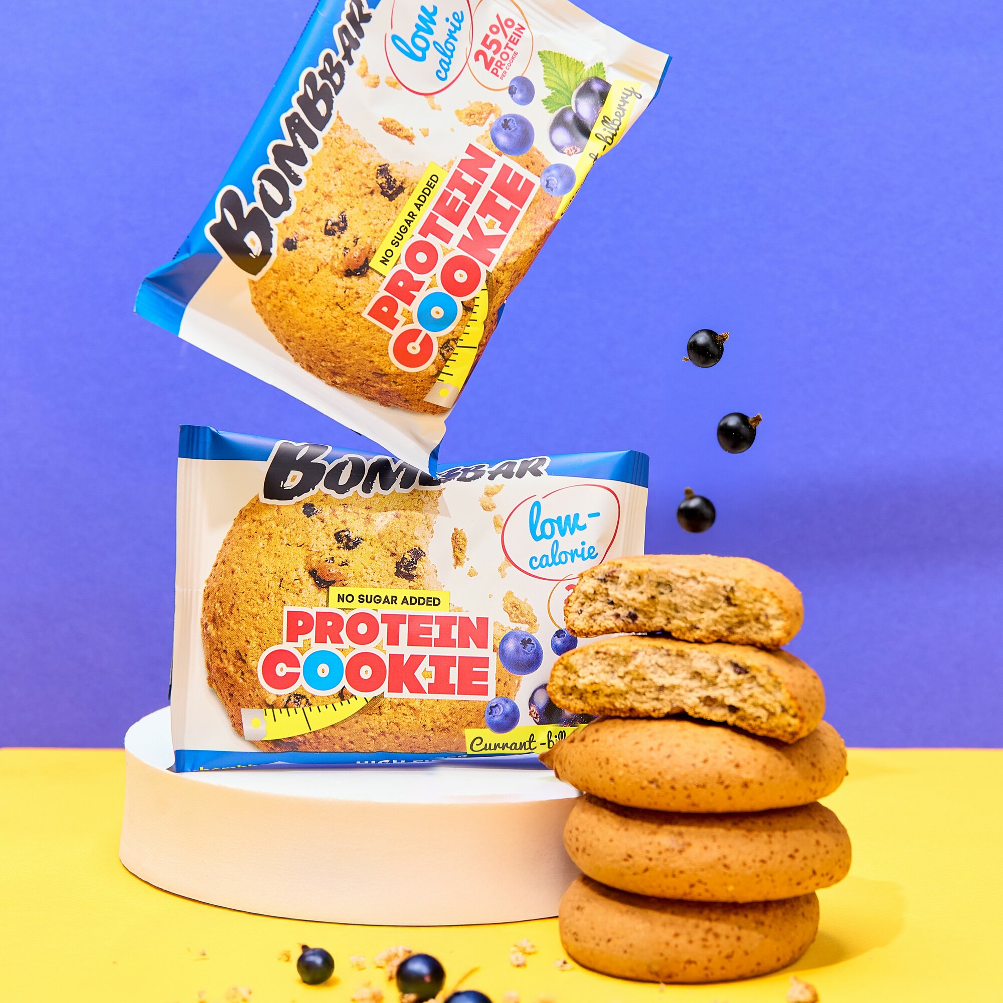 Купить Протеиновое печенье низкокалорийное Bombbar Protein Cookie без сахара "Смородина - Черника", 12шт х 40г