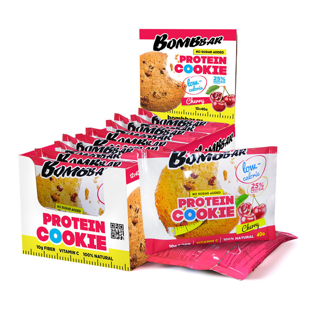 Протеиновое печенье низкокалорийное Bombbar Protein Cookie без сахара, Вишня (12шт по 40г)