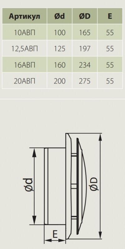 10АВП, Анемостат вытяжной регулируемый с фланцем АБС D100
