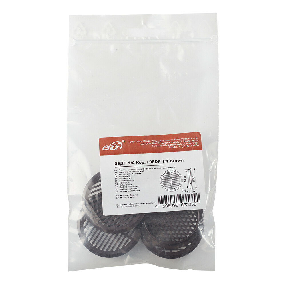 Решетка переточная 05ДП (4 шт; круглая; 50 мм; с фланцем 45 мм; коричневая) ERA 90-01928