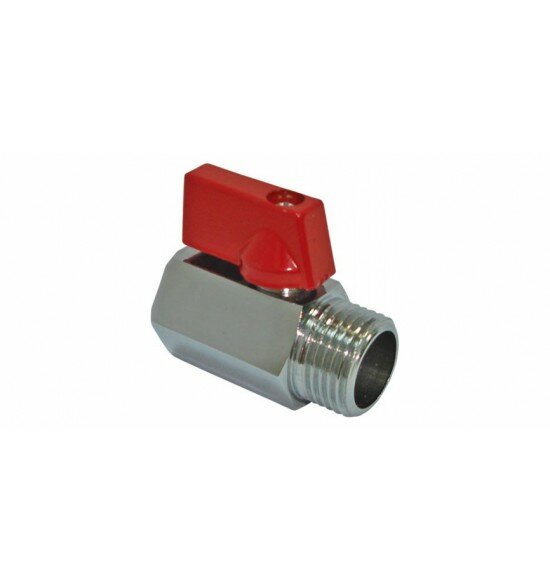 Кран шаровой мини STOUT - 1/2" (НР/ВР, PN15, Tmax 90°С, ручка-флажок красная)