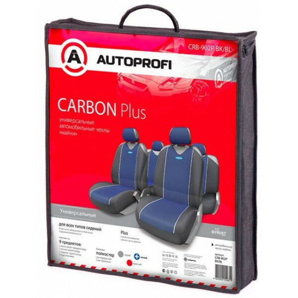 Чехлы "autoprofi" майки carbon+ цв.черно-cиний (9 пр.) 1/6 crb-902p bk/ bl