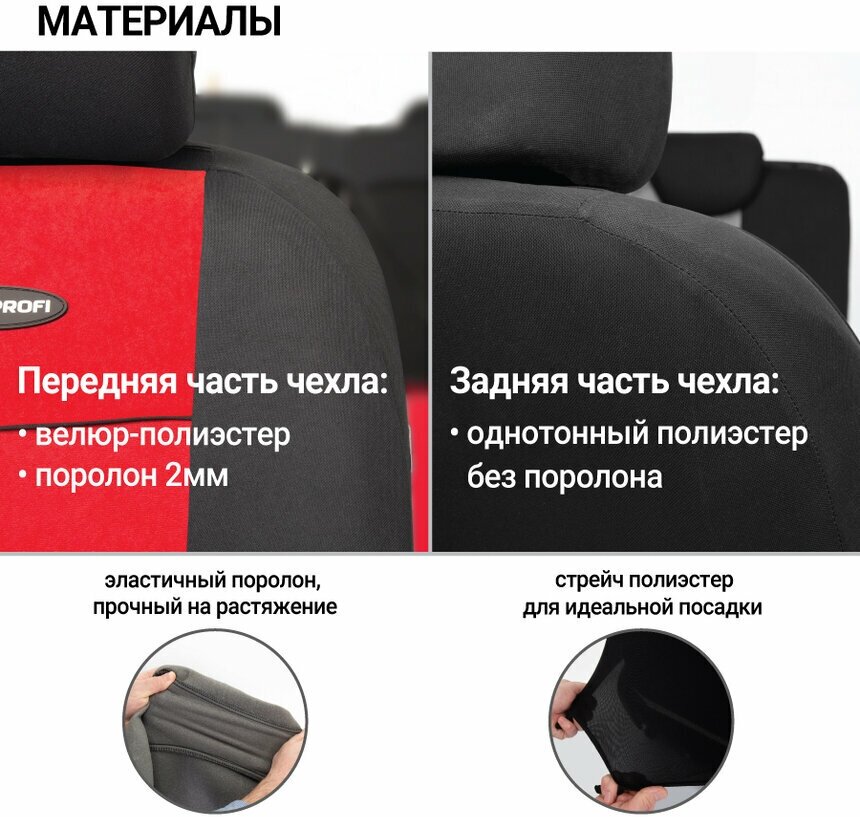 Чехлы автомобильные Autoprofi TT полиэстер/велюр черный/красный 9 предметов