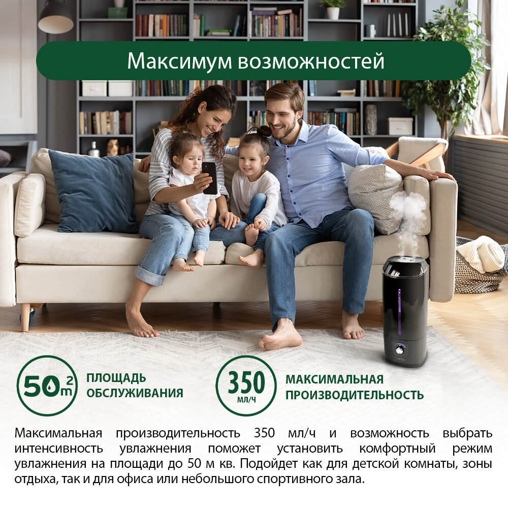 Отличный увлажнитель воздуха, мой кот постоянно лежит рядом, как только я включаю. Это важный факт. Рекомендую!!!!