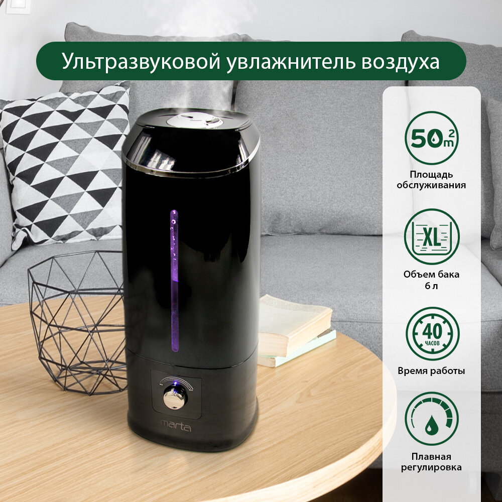 Увлажнитель воздуха с функцией ароматизации MARTA MT-2691, черный жемчуг интересное: