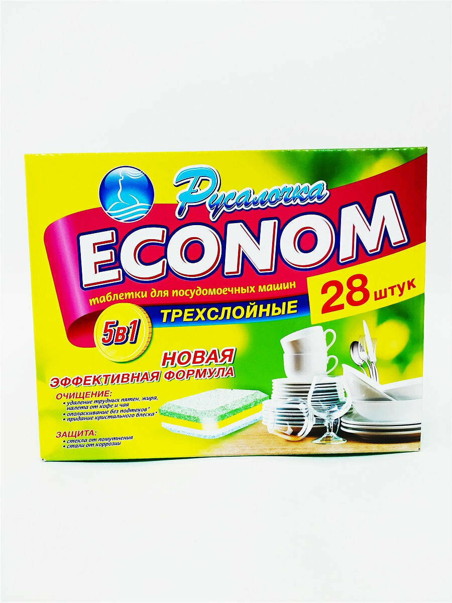 Русалочка Таблетки для посудомоечных машин Econom, 28 штук, 5в1 интересное: