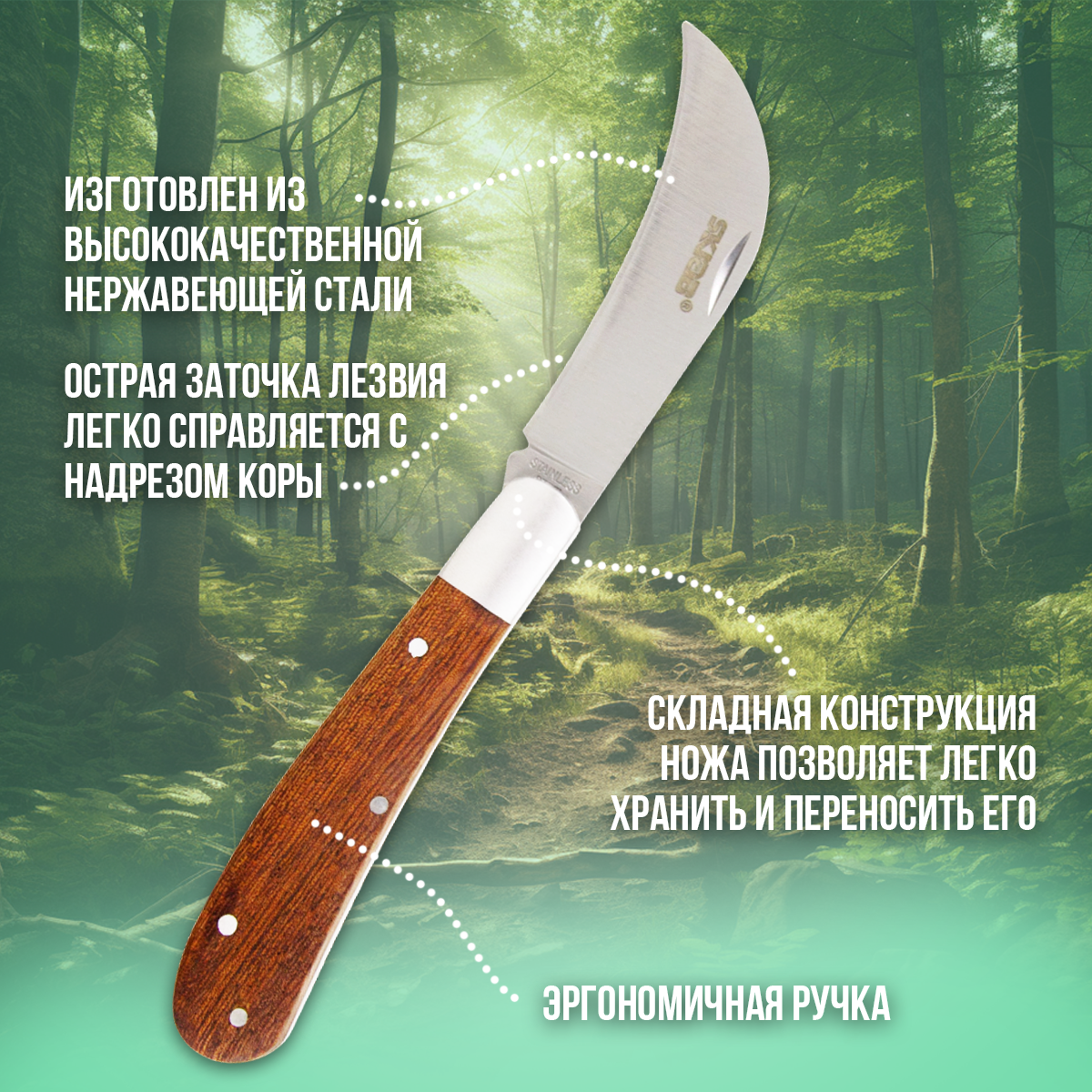 Нож садовый прививочный SKRAB 28022 интересное:
