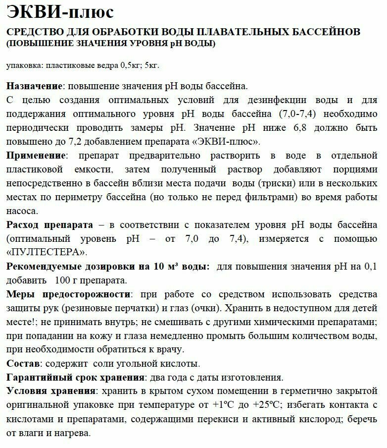 Экви плюс 0,5 кг., средство для повышения уровня ph воды, без хлора, химия для бассейнов