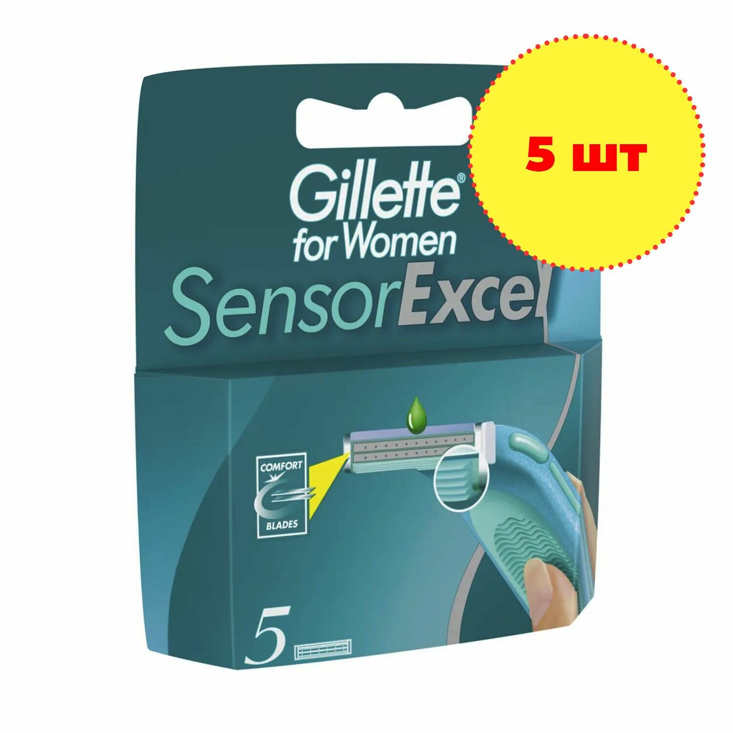 Gillette Сменные кассеты Gillette for Women Sensor Excel, 2 лезвия, 5 шт.