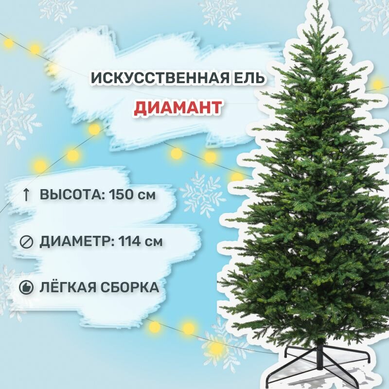 Ель искусственная "Диамант", (хвоя - 100% литая PE), 1.5 м, царь елка, EverChristmas