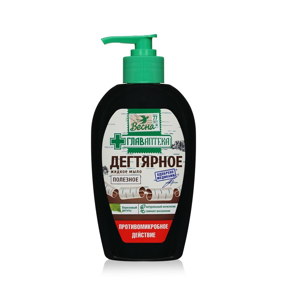 ПКК Весна Главаптека мыло дегтярное жидкое натуральное антибактериальное для рук для лица для тела 280 г 4 шт