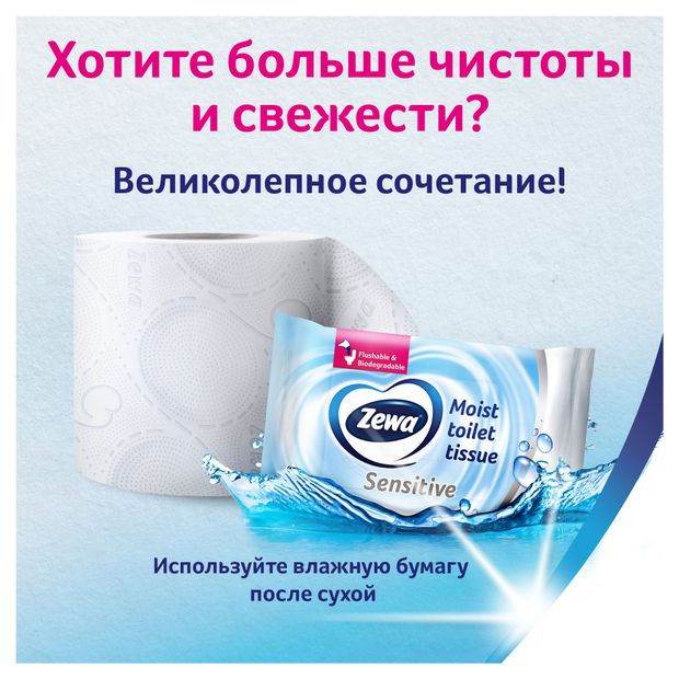 Туалетная бумага Zewa без аромата, влажная, 42 шт.