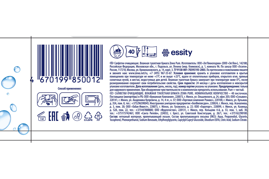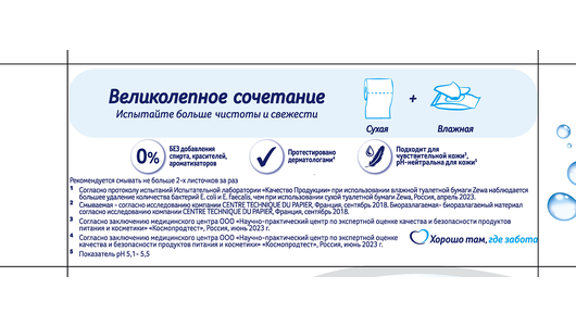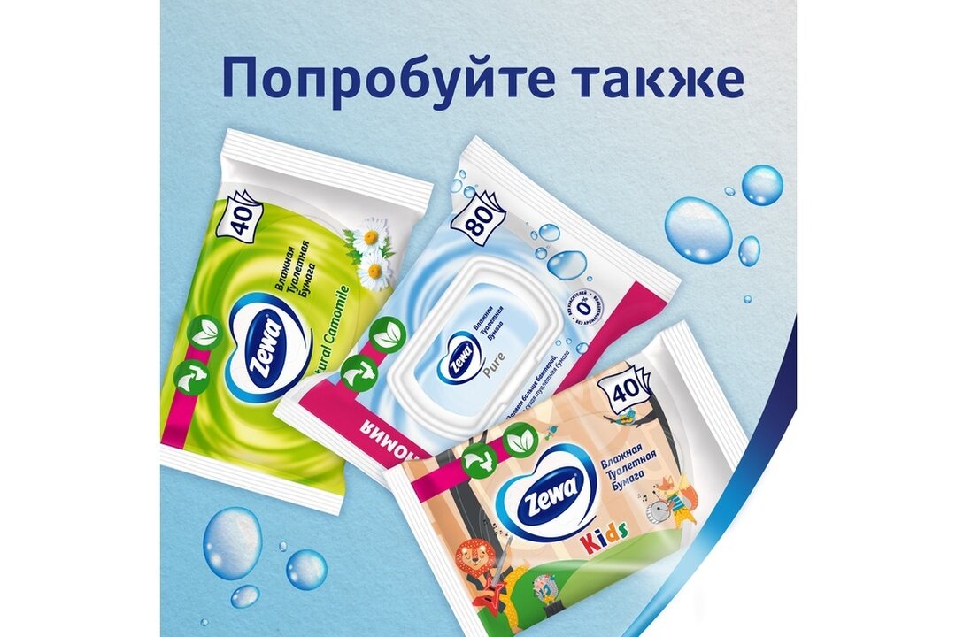 СохранитьВлажная туалетная бумага Zewa Пьюр, 40 шт. интересное:
