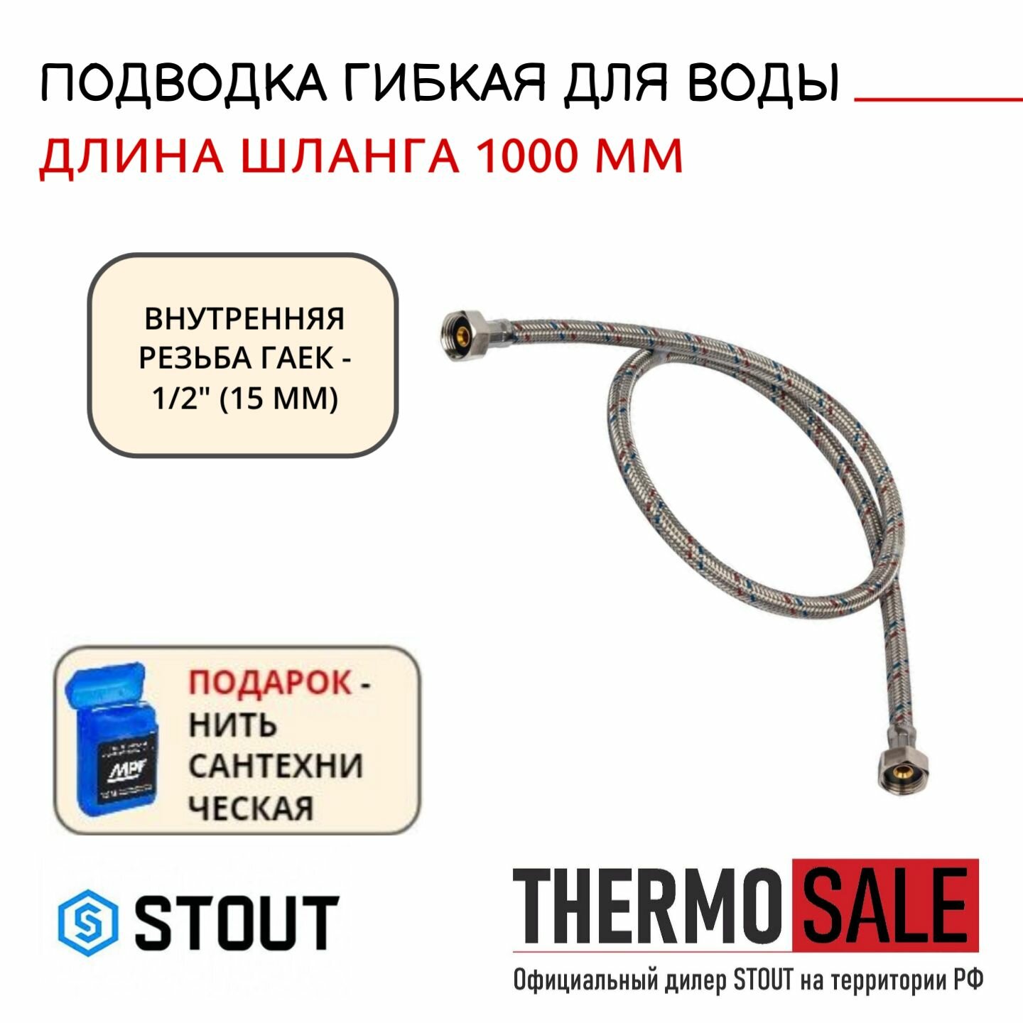 SHF-0119-081515 STOUT Гибкая подводка для воды ВР 1/2 х ВР 1/2, длина 1000 мм