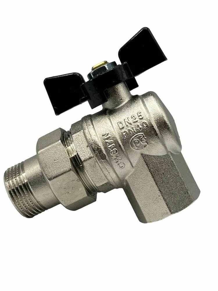 Кран шаровой со сгоном угловой 1" руч/бабочка BUGATTI с.594