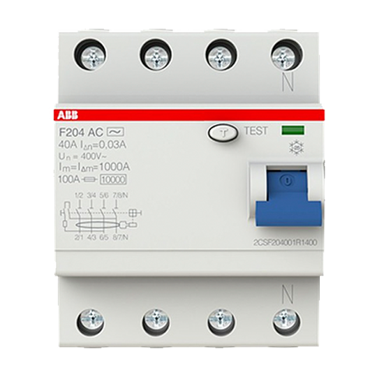 Блок утечки тока (УЗО) ABB F204 AC-40/0,03 , 4-х полюсный, 40A, 30mA, тип АC (2CSF204004R1400)