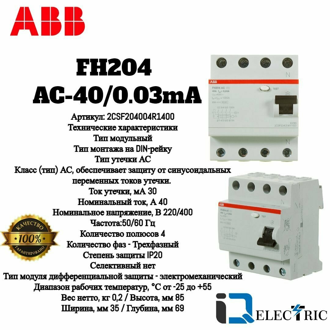 УЗО 4P 40А 30мА 1кА FH204AC (ABB), арт. 2CSF204004R1400