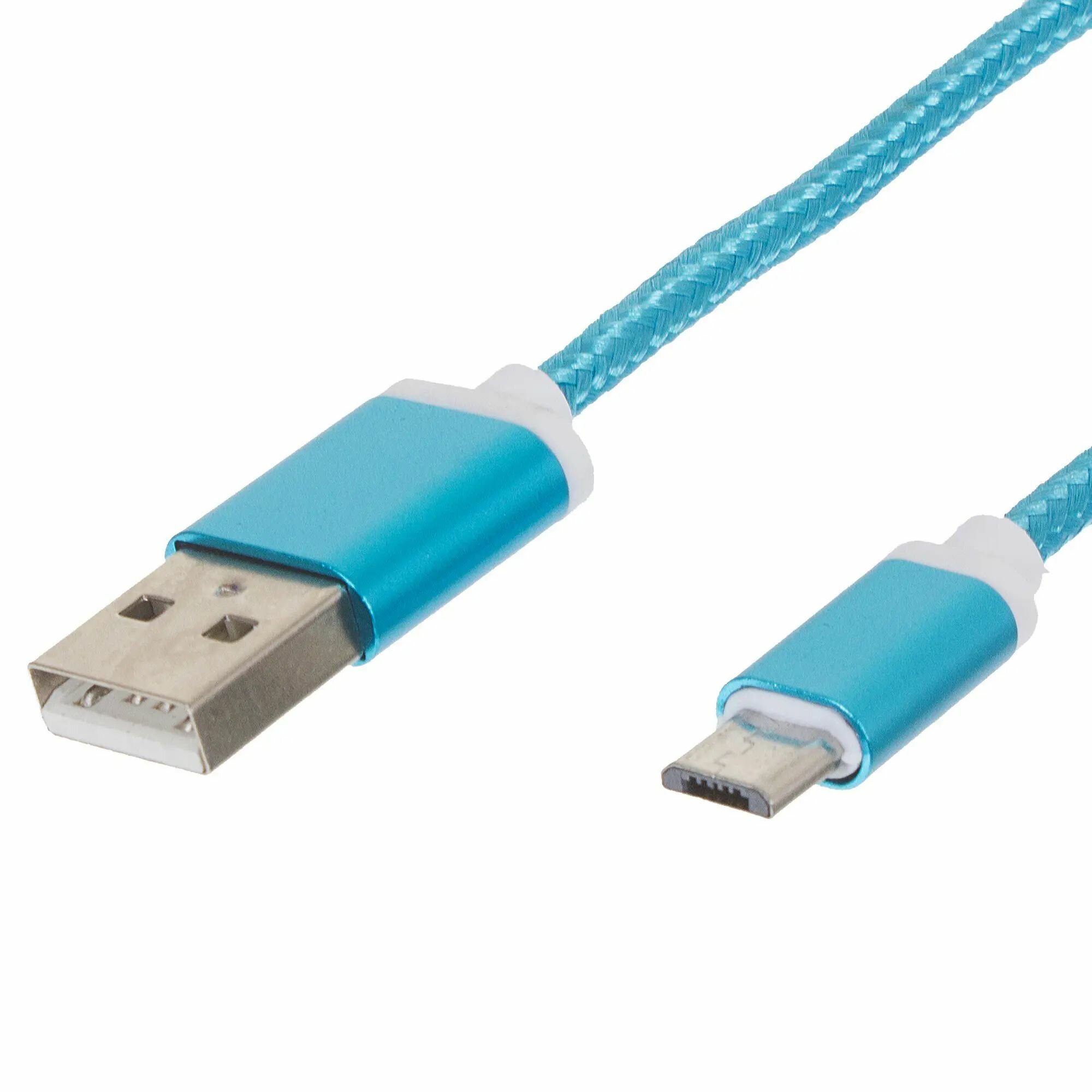 Кабель microUSB цвет синий 1,5 м в тканевой оплётке