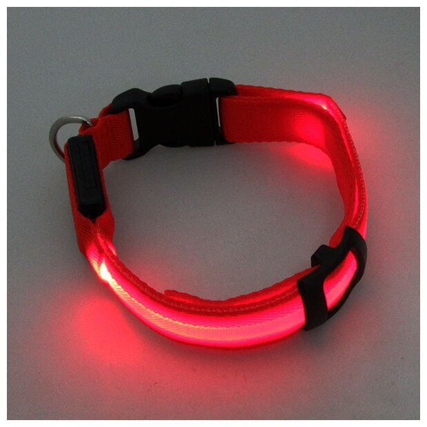 Ошейник для собак Richi Светящийся 3 режима работы на батарейках, красный, лента S (32-34 см)