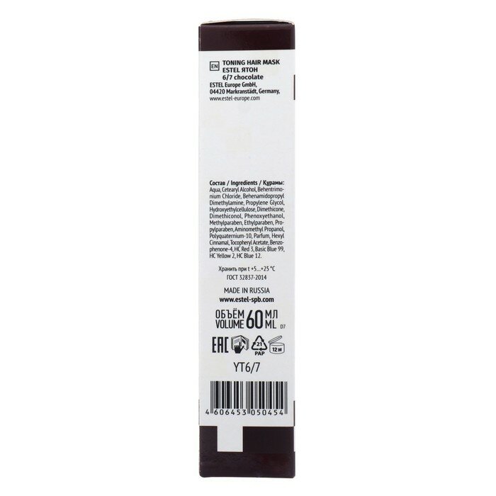 ESTEL Я Тон Маска для волос тонирующая, оттенок 6/7 Шоколадный, 60 г, 60 мл, туба интересное:
