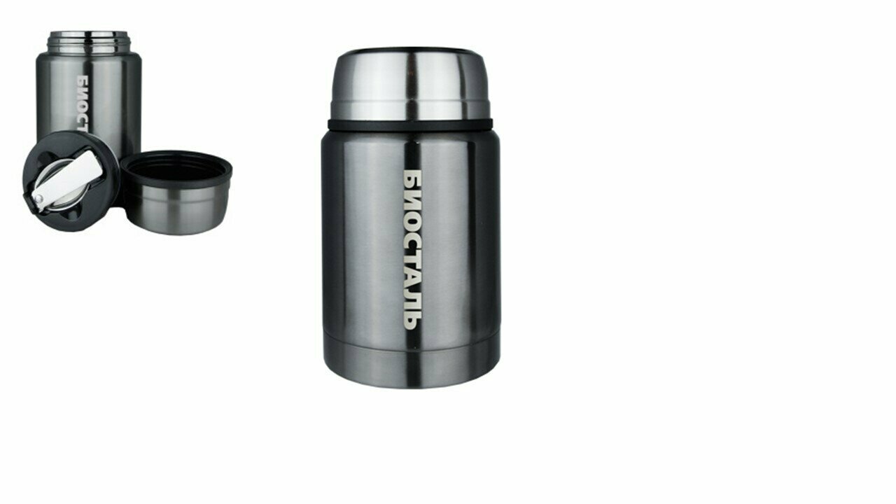Термос для еды Biostal (0,75 литра), с ложкой, серый