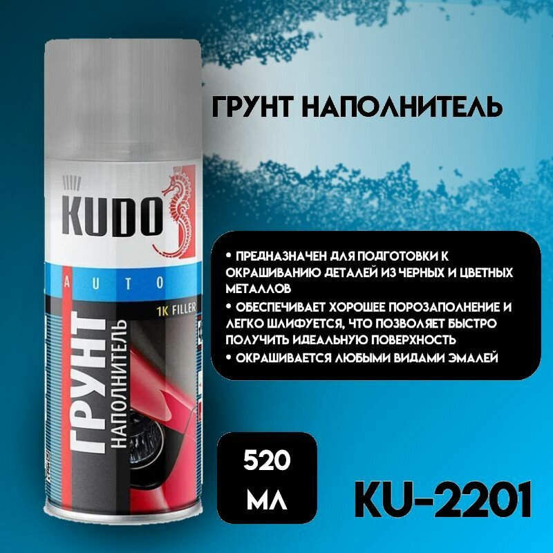 Грунт Спрей-Наполнитель 1К Акриловый Серый, 520 Мл. Kudo Ku-2201 Kudo арт. KU-2201