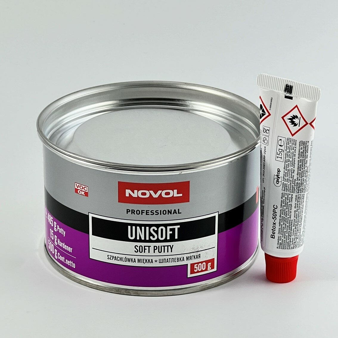 Шпатлевка Novol Professional Unisoft Soft Putty мягкая, (+отвердитель Betox-50PC), для различных поверхностей, банка 485г + туба 15г, арт. 1151
