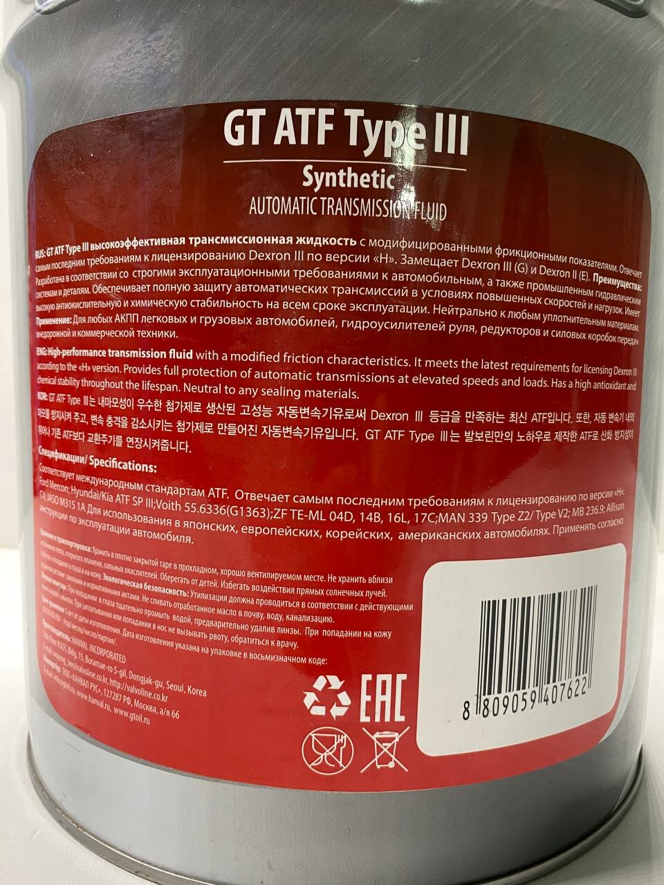 GT OIL 8809059407622 Трансмиссионное масло GT ATF Type III (20л) 8809059407622