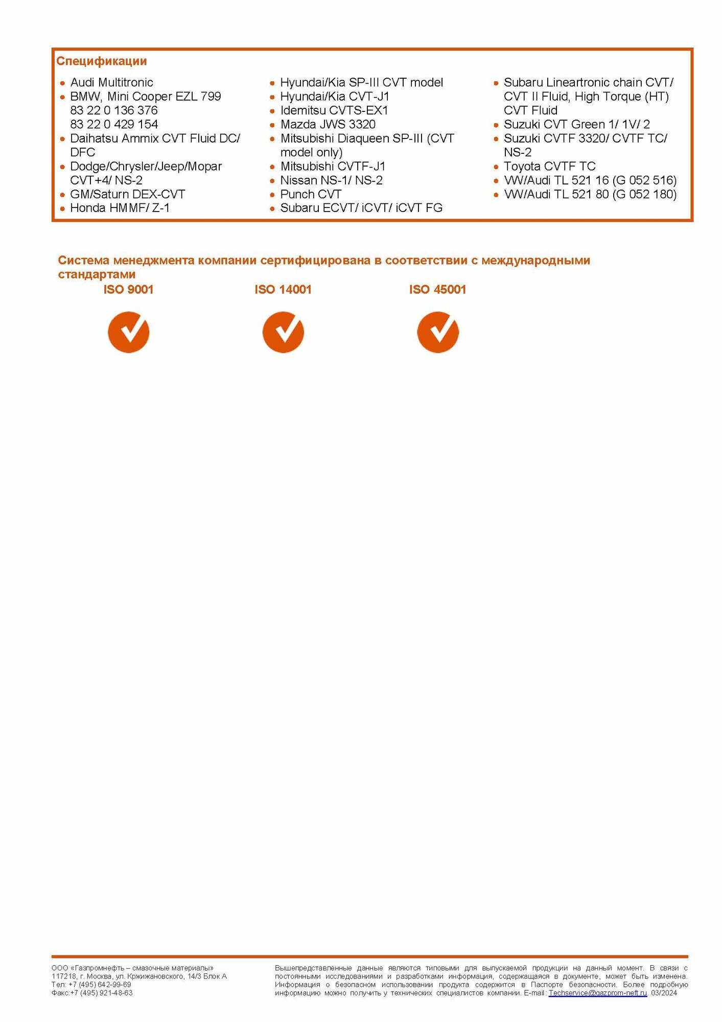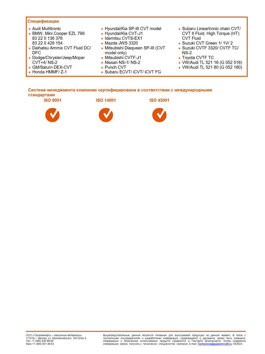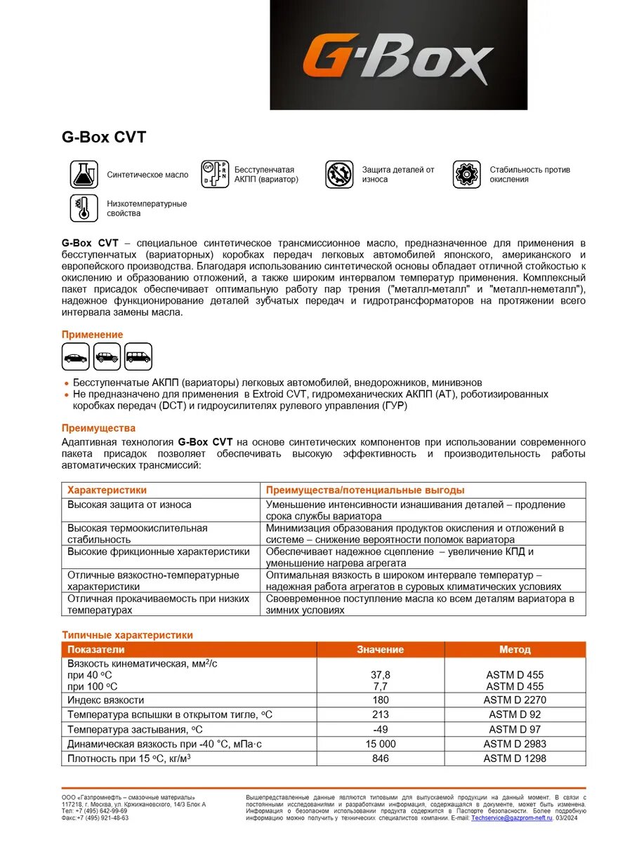 Масло трансмиссионное G-Box CVT 1л/0,851 кг.#