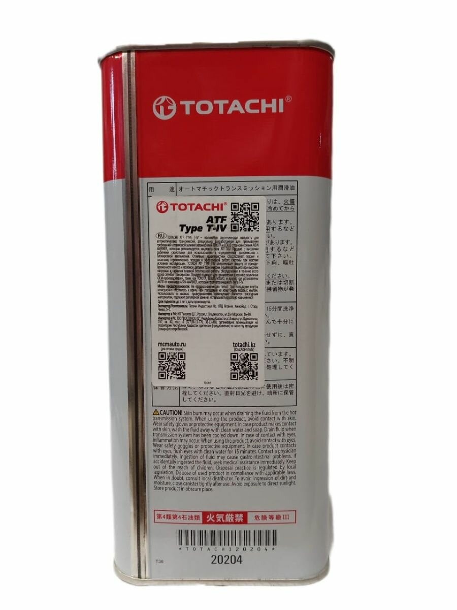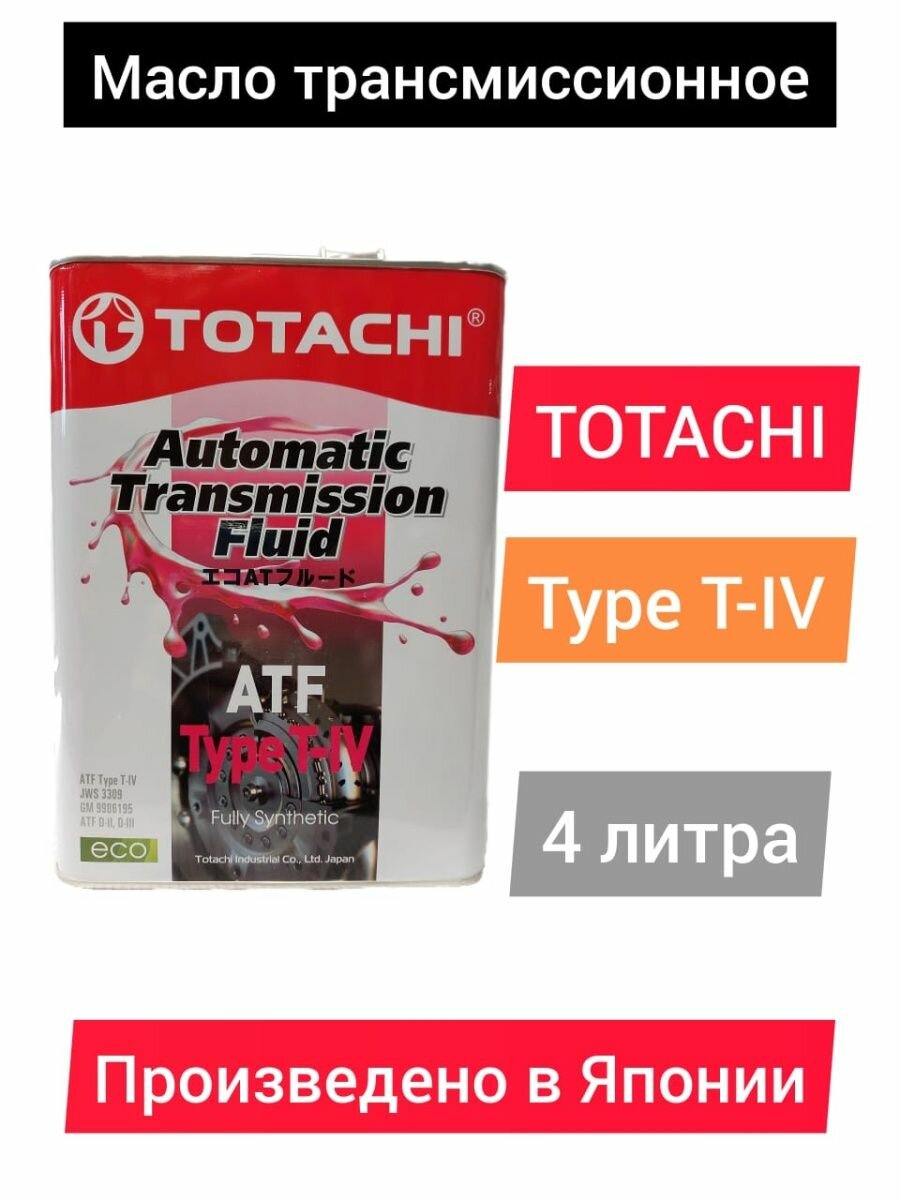 TOTACHI 20204 Масло трансмиссионное TOTACHI ATF TYPE T-IV 4л (4562374691025) 20204 1шт