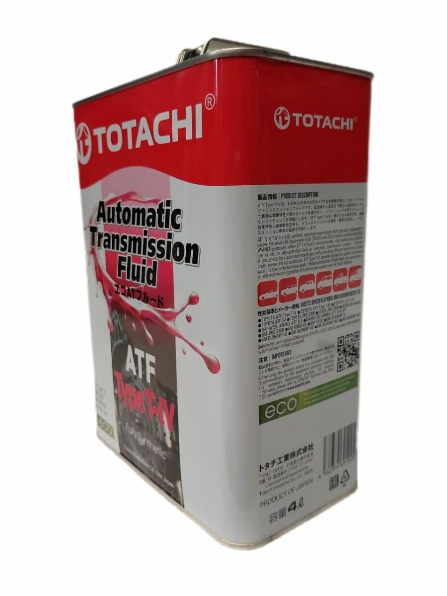 TOTACHI 20204 TOTACHI ATF TYPE T-IV (4L)_жидкость гидравл.! синт\ Toyota Type T-IV, JWS 3309, Dexron II 1шт