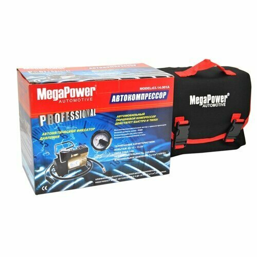 Купить MEGAPOWER-AUTOMOTIVE M14001A Компрессор автомобильный 35л/мин. 10атм. 14А 12V в прикуриватель (автомат давления, сумка) MEGAPOWER